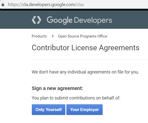 Contributor License Agreement의 약자로 구글 개발자 페이지(https://cla.developers.google.com/)에 들어가서 동의를 누르면 금방 적용이 된다.