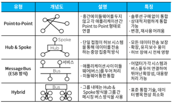 (4) 중간에 미들웨어를 두지 않고 각 애플리케이션을 point to point로 연결한다.