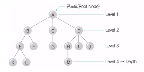 만일 아래의 그림을 보고 Root Node 를 묻는다면 답은 A 이며, Terminal Node를 묻는다면 K, L, F, G, M, I, J가 모두 해당합니다.