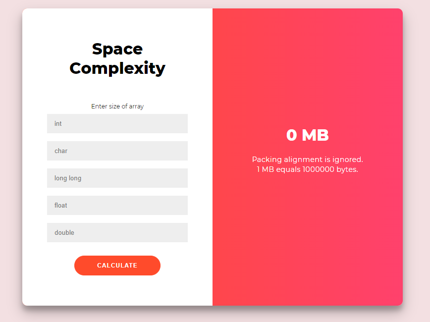 알고리즘 문제를 풀 때, 공간 복잡도를 빠르게 계산할 수 있도록 공간복잡도 계산 웹페이지를 생성하였다.