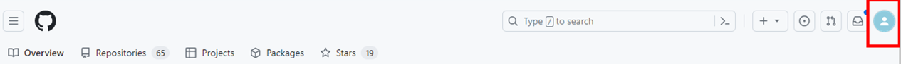 1. Github 페이지 상단에서 가장 오른쪽에 있는 본인의 프로필을 클릭하고 > Settings 메뉴를 선택합니다.