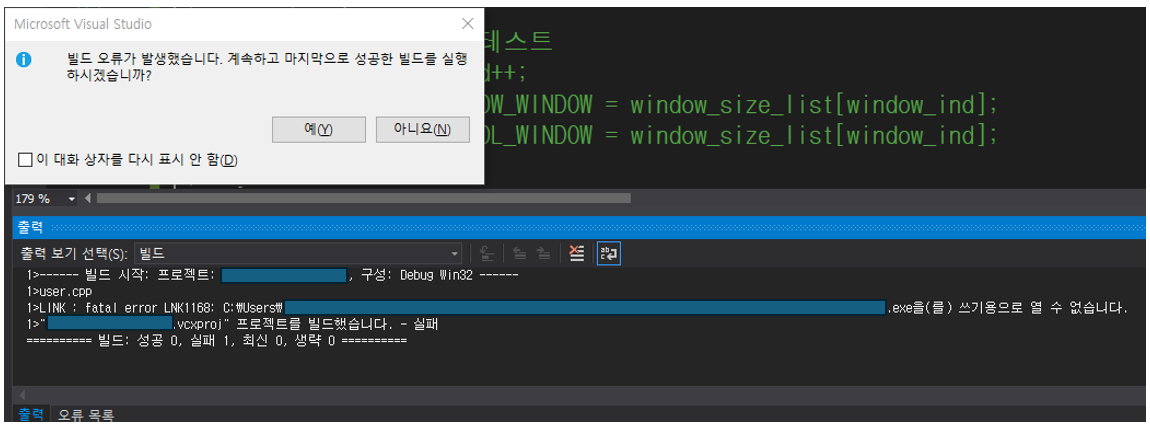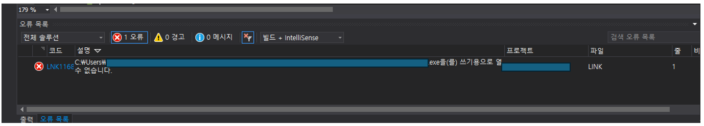 exe 를 쓰기용으로 열 수 없습니다 에러 해결하기 (LINK1168)